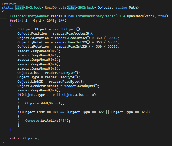 Due to similarities between the general play styles of Heroes and ’06, I targeted accuracy when it came to the SET layout of the stage. Thankfully, due to the SET format for Heroes itself being fairly well documented (I used this page on Sonic Retro a lot for reference), I was able to write some hacky code (based on code I made for automating Shadow The Hedgehog SET Conversion for Glyphic Canyon) to automate the very rough layouts.