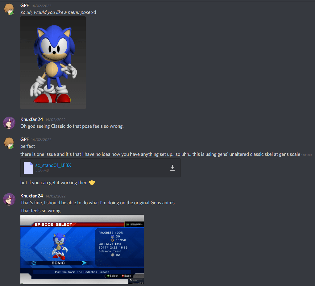 As it turns out, Classic Sonic has a LOT of animations in Sonic Generations, so the first step (I decided) was to convert each and every one of them into ’06 and then work through assigning them.