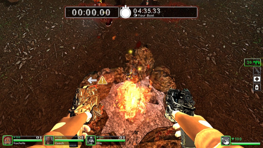While this is probably a problem with the original map, the Forest map did have a missing trigger_hurt in places. As a result, a couple of campfires found around the map can be stood on top of completely safely. Is that really an issue? No not really, but it is a little silly, especially when some other torches mounted on walls actually do damage you as they probably should.