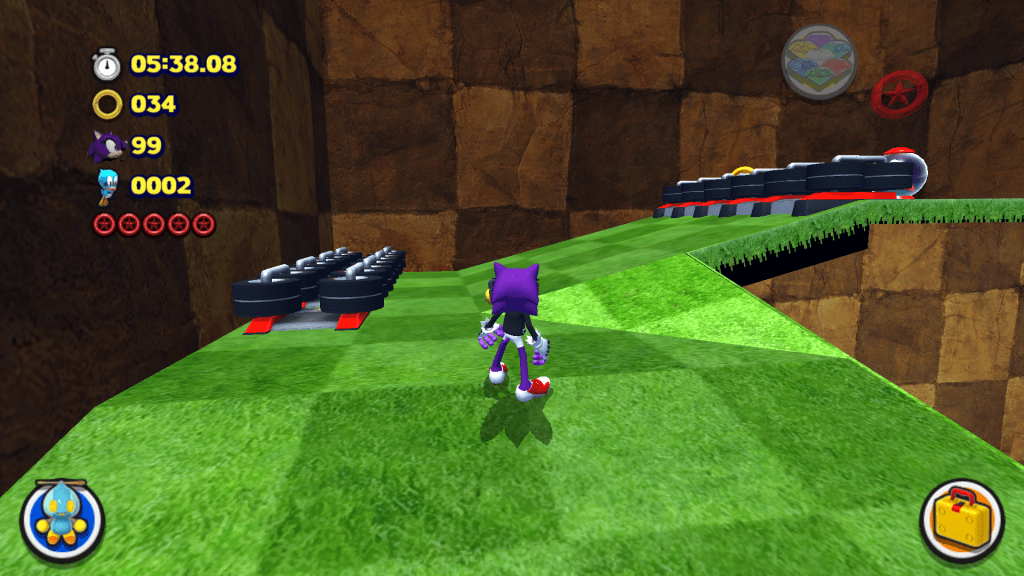 About all of interest that’s left to say regarding layout is the fact that Green Grove has TWO Goal Capsules. One at the end of Act 2 where you’d expect it to be. With another being tucked away atop that ramp. Of course I didn’t just put the Capsule there, feeling the need to throw in a Red Star Ring (which is fair) and THREE extra lives (really?!).