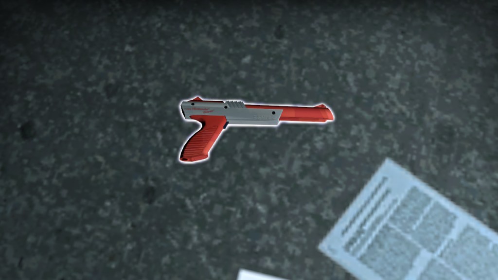A small model and sound mod for Left 4 Dead that replaces the Desert Eagle weapon with an NES Zapper. If I remember correctly, something to do with the Desert Eagle in the SDK Tools were actually completely broken at the time (and might still be) so I ended up using the Pistol animations and files instead.